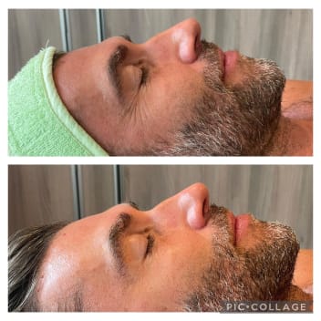 Kosteuttava kasvohoito I.H.C. yhden hoitokerran jälkeinen kuva ennen ja jälkeen.